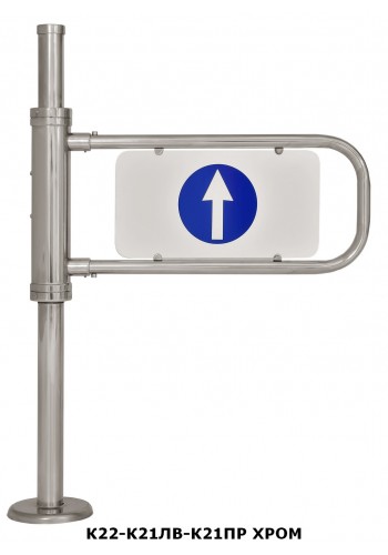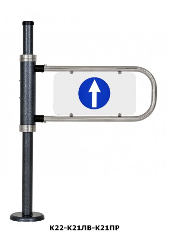 Калитки К21пр, К21лв – односторонние (пр – правые, поворот дуги возможен по часовой стрелке при виде сверху; лв – левые, поворот дуги возможен против часовой стрелки при виде сверху); при попытке пройти в обратном направлении они представляют собой преграду. На пластиковой вставке односторонних калиток с одной стороны изображена стрелка, с другой стороны - знак запрета.